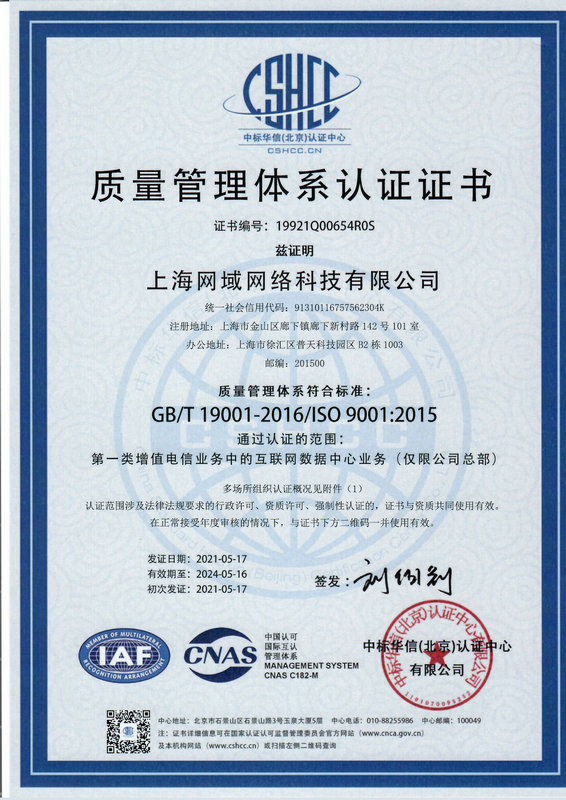 ISO9001質(zhì)量管理體系認證證書
