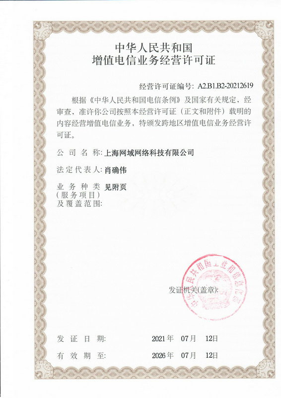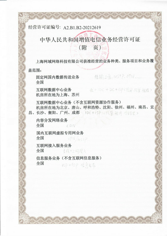 電信增值許可證附頁