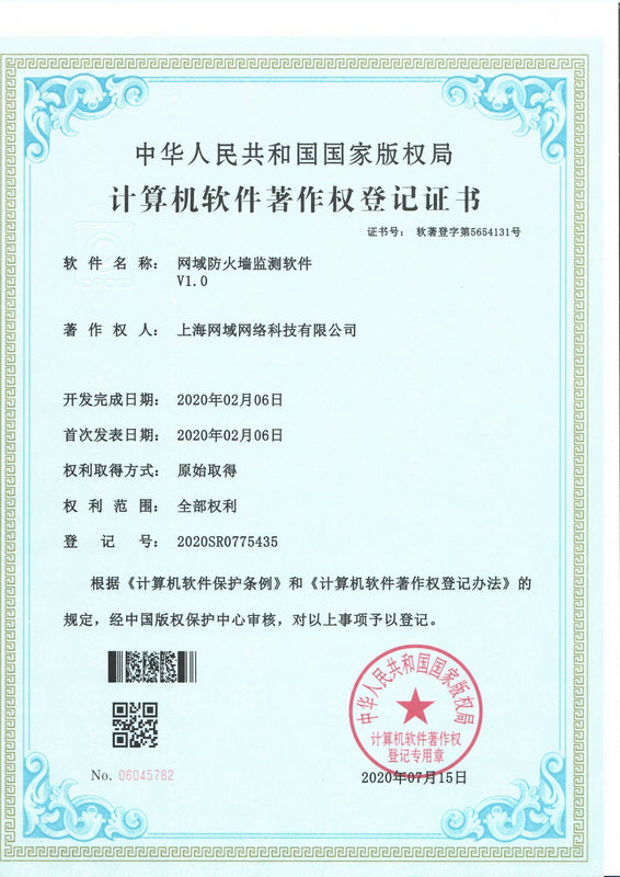 計算機軟件著作權登記證書(防火墻監(jiān)測軟件)