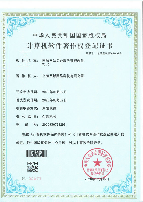 計算機軟件著作權登記證書(網(wǎng)站后臺服務管理軟件)