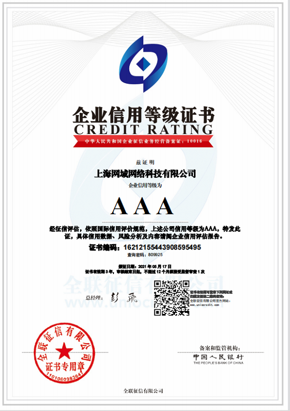 企業(yè)信用評級AAA認證